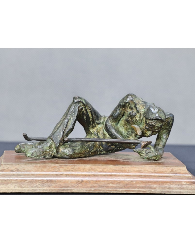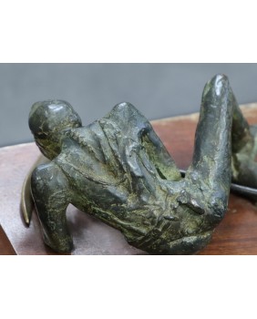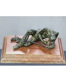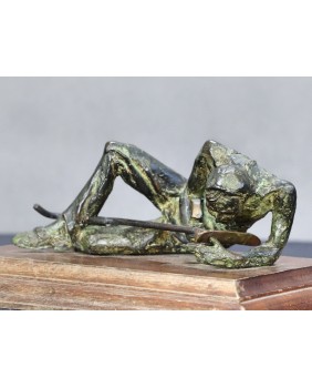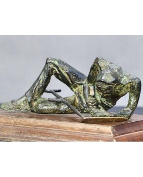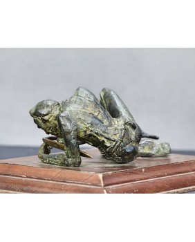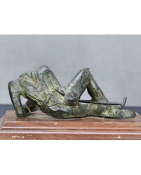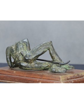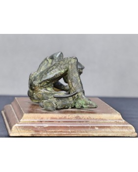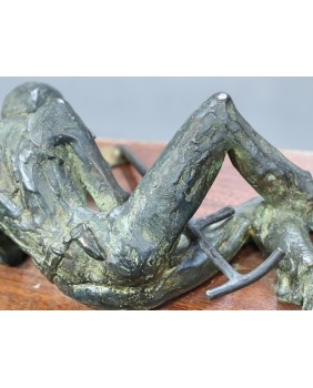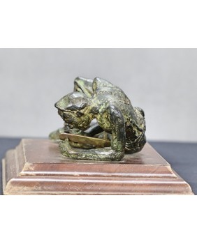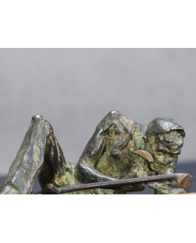 Klepiący kosę. Brąz. Drewno. Francja. XIX/XX wiek.