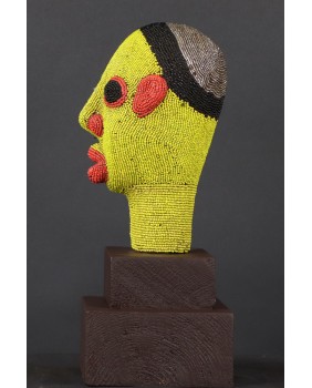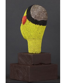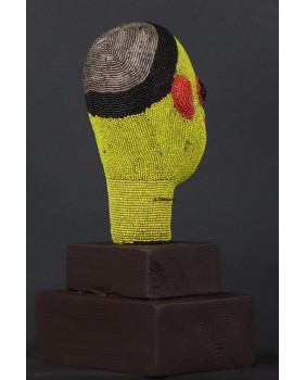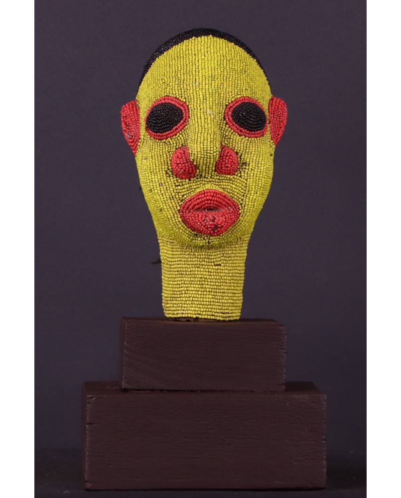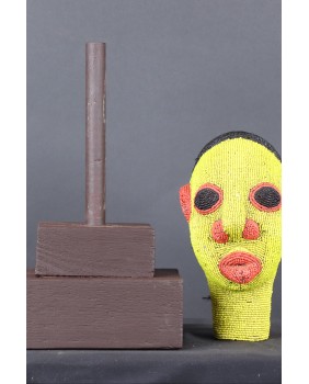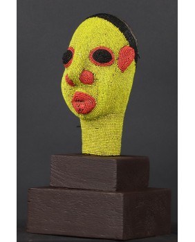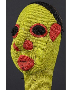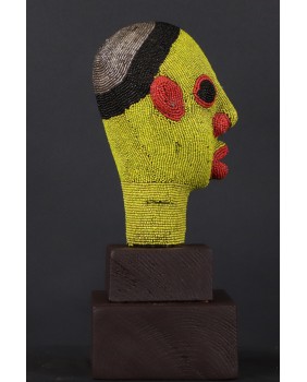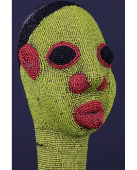Głowa. Bamileke. Paciorki. Terakota. Drewno. Kamerun. XX wiek.