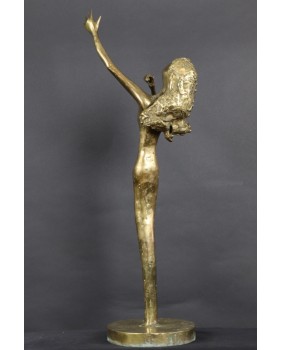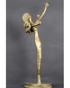 Kobieta z wyciągniętą ręką. Mosiądz. XX wiek.