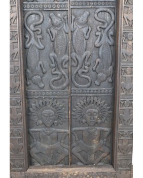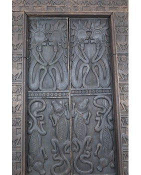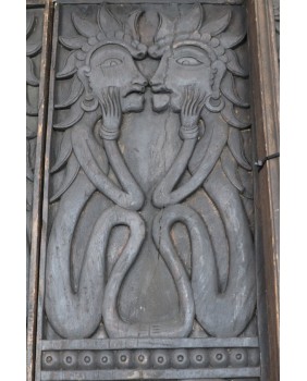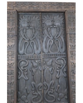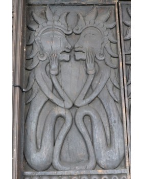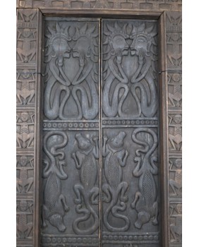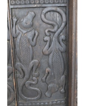 Drzwi domu modlitw. Drewno. Dayak. Borneo. XX wiek.