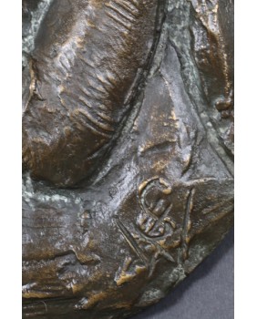 Macierzyństwo. Płaskorzeźba. Brąz. Inicjały S.W. XX wiek.