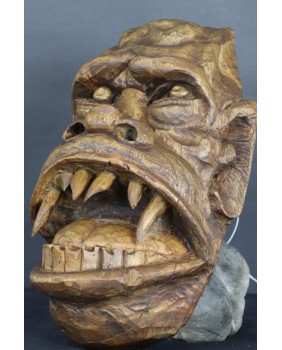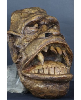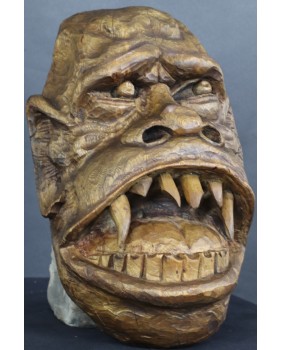 Łeb goryla. Płaskorzeźba. Drewno. XX wiek.
