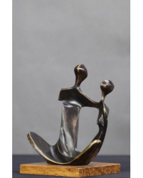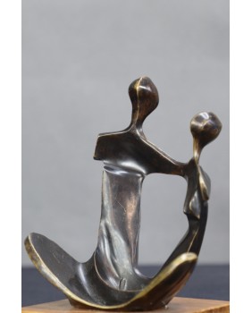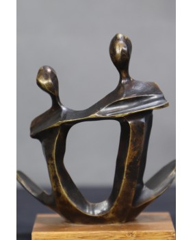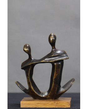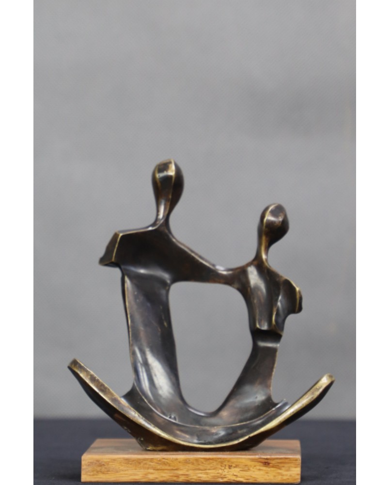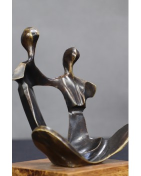 Siedząca para. Brąz. Drewno. Europa. XX wiek.