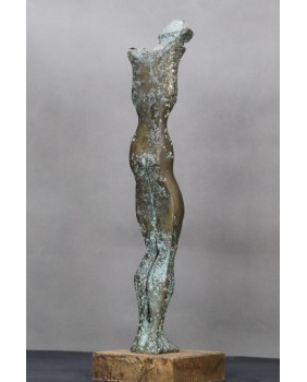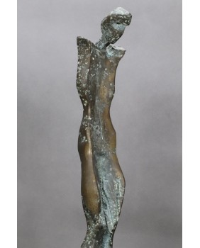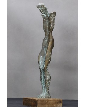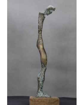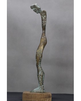 Postać z pochyloną głową. Brąz. Drewno. Europa. XX wiek.