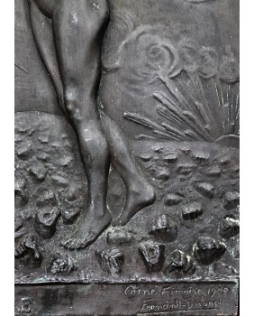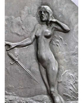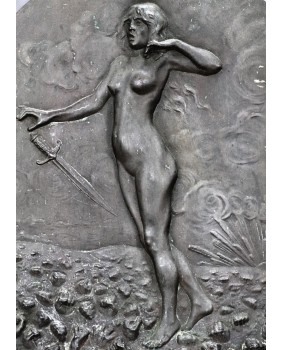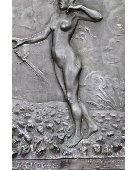 Trochę jestem zdziwiony faktem, że kupiłem tę plakietę. Wojna to nie jest temat, który mnie szczególnie kręci. Nie jestem szczególnym fanem secesji a ten styl jest niewątpliwie w płaskorzeźbie obecny i co najdziwniejsze cena jaką zapłaciłem nie była atrakcyjna. Ale stało się. Tak bywa w handlu czymś tak niewymiernym jak sztuka.