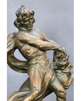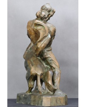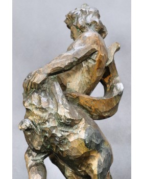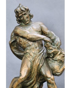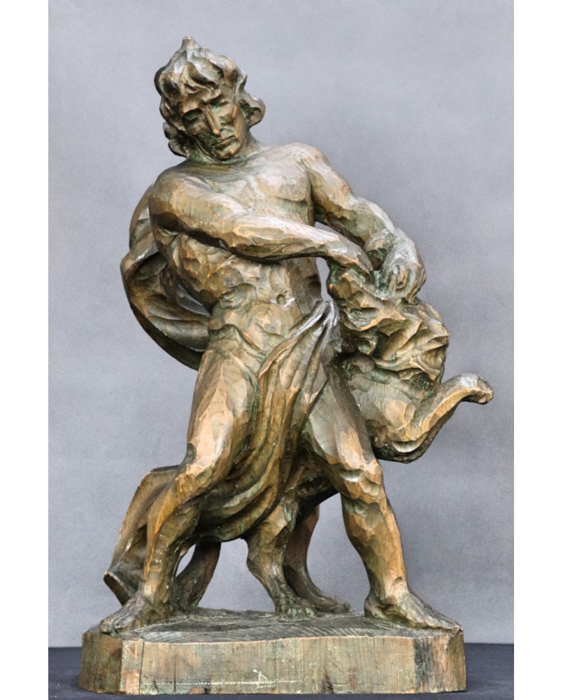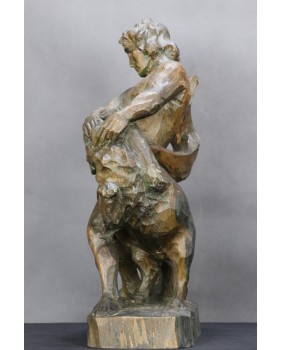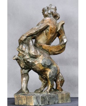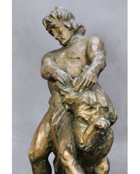Tu mamy nieco plebejską wersję tej historii bowiem mężczyzna walczy z wilkiem. Rzeźba jest dziełem profesjonalnego artysty świetnie obeznanego z ludzką i zwierzęcą anatomią. Doskonale oddaje ruch podczas sceny walki a pozostawione bez obróbki ślady dłuta podkreślają dynamikę rzeźby.