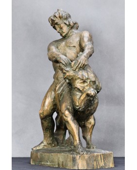 Rzeźba jest prawdopodobnie artystyczną wprawką, korespondującą ze znanym z Mitologii tematem. Odnosi się do pierwszej z 12 prac Heraklesa jaką było pokonanie Lwa Nemejskiego, bestii której nie imało się ostrze miecza ani groty strzał. Herakles lwa udusił a zdartą z niego skórę traktował później jako zbroję.