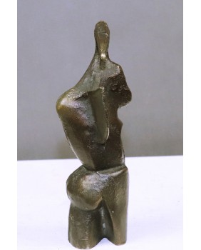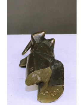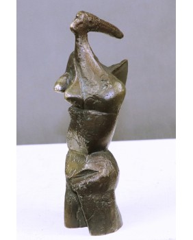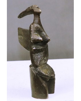 Tę niewielką rzeźbę kupiłem w Paryżu na targach organizowanych z okazji Święta Zburzenia Bastylii. To dzieło kubistyczne mające też symboliczne ambicje. Mnie najbardziej kojarzy się z obrazem Salwatora Dalego przedstawiającym płonącą Afrykę. Brąz przedstawia kobiecy akt z długimi rozwianymi włosami. Z pleców postaci wyrasta ostroga będąca zapewne skrzydłem. U mnie skojarzenie z plemienną sztuką afrykańską jest nieodparte. Być może wynika ono z osobistych fascynacji choć mam nadzieję, że jest też obiektywnym doświadczeniem większej grupy osób. Rzeźba jest sygnowana inicjałami R. B. Wiemy, że było odlanych sto takich rzeźb. Myślę, że nikt nie ryzykuje takiej inwestycji dla nieznanego artysty. Dlatego jest mi wstyd, że nie potrafiłem odnaleźć autora brązu.