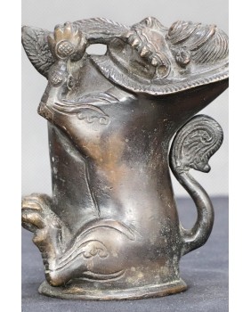 Długo zastanawiałem się nad przeznaczeniem tego niedużego, wykonanego z brązu lwa, czy też mitycznego stworzenia przypominającego lwa. Byłem pewien, że pochodzi z Azji i szczerze przyznaję, że stawiałem raczej na pochodzenie z Chin. Nie miałem wątpliwości, że przedmiot jest stary i miał konkretne zastosowanie.