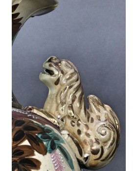 Wazon zachował się w bardzo dobrym stanie. Maleńki odprysk na sierści psa Foo widać na zdjęciu. O wysokości już wspomniałem. Szerokość brzuśca wynosi 28 cm, Szerokość wraz z uszami to 35 cm. Średnica pokrywy to 15 cm.