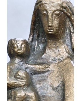 To duża, ponad półmetrowej wysokości, metalowa rzeźba przedstawiająca Madonnę z Dzieciątkiem. Jeśli ktoś lubi rzeźbę współczesną, jest idealna do ogrodowej kapliczki. Zniesie dobrze każde warunki atmosferyczne.