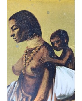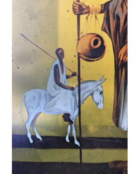 Scena z matką objuczoną dzieckiem na plecach i wieloma naczyniami na wodę i mężczyzną w białej galabiji podróżującym na ośle mnie kojarzy się z afrykańską pustynią. Mimo, że postacie przedstawione są w ruchu to odnoszę wrażenie, że zastygły na chwilę w palącym słońcu Afryki.