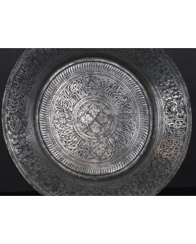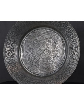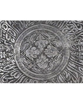 Więc w skrócie. Tekstu arabskiej kaligrafii nie potrafiłem odczytać. Zwykle jest to błogosławieństwo, cytat z Koranu. Napis ma też istotne znaczenie dla kompozycji całości. Trzyma ją w ryzach. Kieruje wzrok odbiorcy od krawędzi talerza ku środkowi, gdzie mamy medalion Shamsa, symbolizujący słońce i boską obecność. Powtarzalność użytych elementów odpowiada porządkowi kosmosu, w którym panuje zasada nadrzędności boskiego prawa. To tak z grubsza. Symboli na talerzu jest dużo więcej.