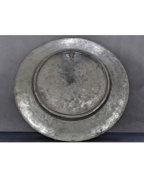 Talerz powstał, jak sądzę w drugiej połowie XX wieku. Ma charakter dekoracyjny o czym świadczy uchwyt do powieszenia na ścianie. Wzór został wygrawerowany na miedzi i pobielony cyną. Średnica talerza ma 39 cm.
