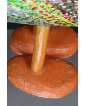 Andrzej Kozłowski związany jest z Ziemią Świętokrzyską, gdzie w 1953 roku się urodził i gdzie w niewielkiej miejscowości Sienna mieszka do dziś. Zaczął rzeźbić w roku 1970. Początkowo ilustrował legendy związane z regionem, z Łysą Górą, gdzie jak powszechnie wiadomo odbywają się sabaty czarownic. Powstawały diabły, czarownice, postacie z ludowych podań i klechd. Ważnymi tematami jego rzeźb są także religia i rodzina. Utrwalił w drewnie wszystkie kluczowe wydarzenia swojego życia rodzinnego.