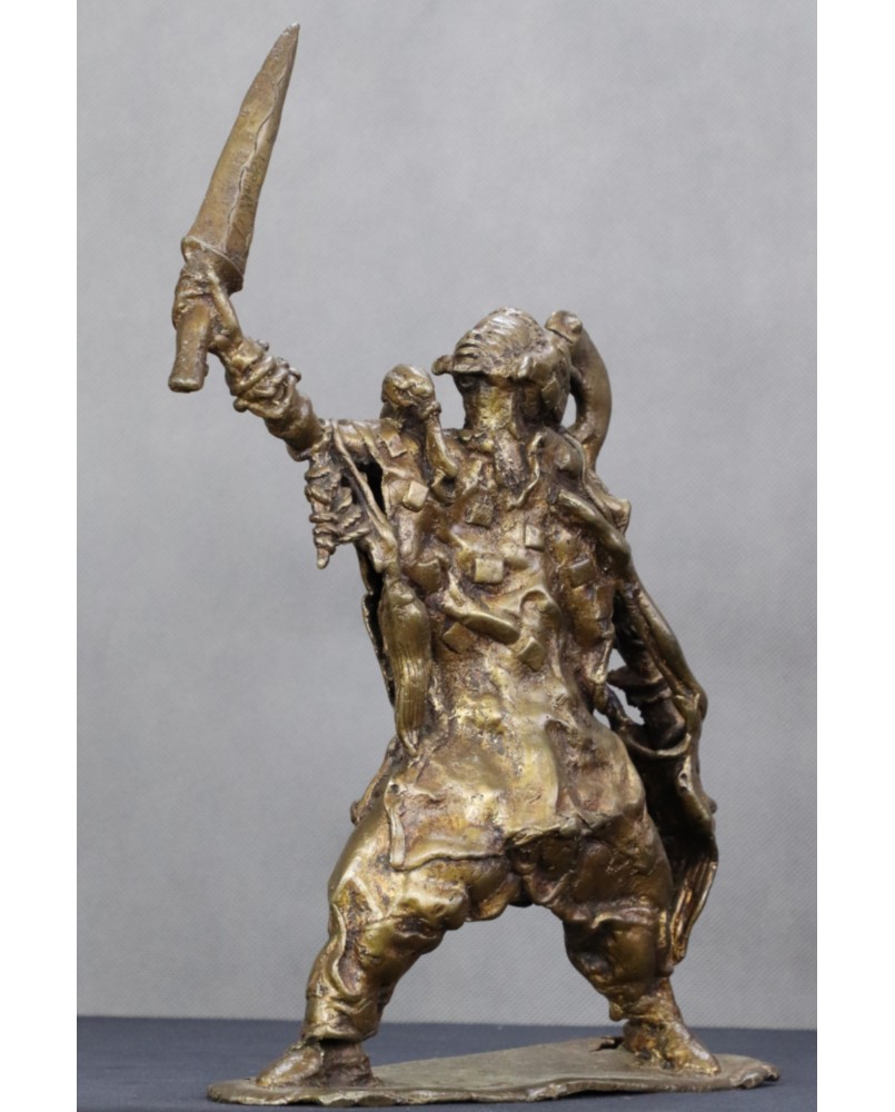 Wojownik, którego autorem jest prawdopodobnie Douda Derme nie jest zupełnie typowym przykładem tego nurtu. Artysta pozwala sobie na dużo większą swobodę w kreacji postaci wojownika. Część szczegółów została zastąpiona niemal abstrakcyjnymi dekoracjami. Z plemienną tradycją wiąże rzeźbę obecność kameleona i węża, totemicznych zwierząt wielu afrykańskich społeczności. Co ciekawe nazwisko Derme dość często pojawia się wśród autorów tych rzeźb. Prawdopodobnie to też pozostałość afrykańskiej tradycji. Zawód rzeźbiarza bywał w Afryce dziedziczony. Stąd całe rodzinne klany traktujące sztukę jako podstawę materialnej egzystencji.
