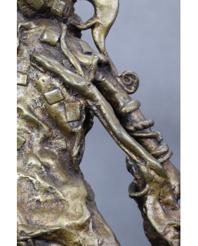 Portretowane są postacie z nieodległej przeszłości. Wojownicy, tancerze, muzycy, rolnicy, kobiety w różnych sytuacjach życiowych. Przedstawienia są realistyczne, zachowują anatomiczne proporcje, widać troskę o szczegóły strój, fryzury, charakterystyczne atrybuty towarzyszące postaciom. Faktura rzeźb jest swobodna jakby twórcy celowo chcieli podkreślić związek z woskowym modelem, z tradycyjną metodą odlewania rzeźb. Mam wrażenie, że artyści z Burkina Faso z dużą sympatią i szacunkiem odnoszą się do własnego dziedzictwa pokazując różnorodność typów i postaci z własnej historii.