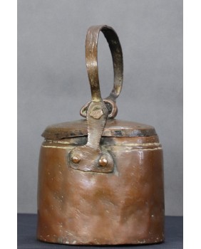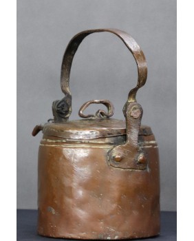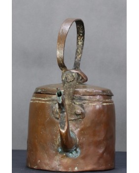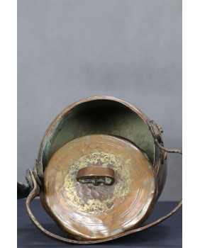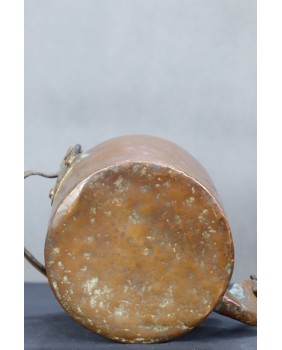 Jest bez wątpienia stary. Na pewno przez długie lata spełniał funkcję użytkową o czym świadczy osad kamienia wewnątrz. Przez moment zastanawiałem się czy nie pochodzi z Azji ale bardziej jestem skłonny uznać proweniencję europejską. Stawiałbym na Francję jako miejsce powstania. Prymitywne wykonanie sugeruje, że jest to produkt prowincjonalny, ludowy.