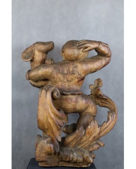Młodzieniec z psem. Drewno. Rzeźba...