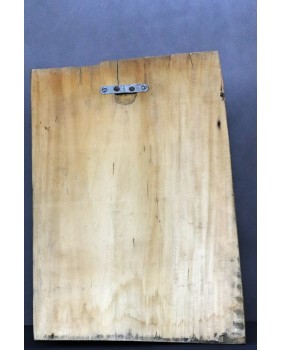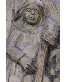 Rzeźba jest duża. Powstała z dechy o co najmniej 8 centymetrowej grubości. Ma 48 cm wysokości i 31 cm szerokości.
