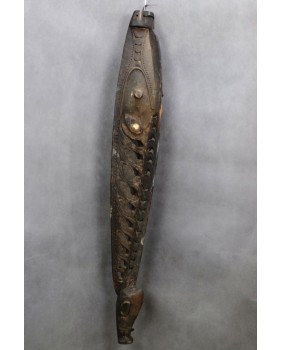800,00 złRzeźby mindia, łączące często wyobrażenie ducha przodka i elementy animalne, w tym przypadku jest to łeb dzikiej świni, są nieodłączną częścią ceremonii yema. Po uroczystościach towarzyszących zbiorom plonów, rzeźby trafiają do centralnego punktu wioski, świętego domu duchów, gdzie są przechowywane przez cały rok.