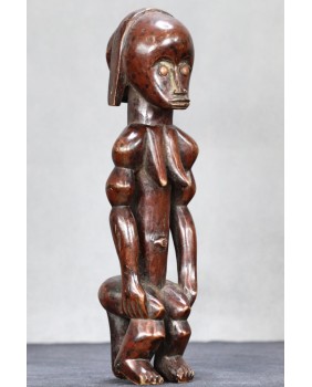 800,00 złNapisano tam, że podobne rzeźby robił odłam ludu Fang, Ntumu z północnego Gabonu. Sugerowano, że rzeźba mogła stanowić część insygniów władzy szefa klanu. Mogła zdobić laskę władzy, berło, łapkę do odganiania much czy toporek. Osoba posiadająca te insygnia korzystała z opieki strażnika kości byerii ale jednocześnie miała obowiązek zapewnić pomyślność swojej społeczności i dbać o kości przodków.