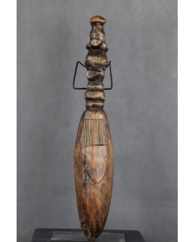 500,00 złZnacznie rzadziej eksponuje się w tych łyżkach postacie zwierząt. Prawdę powiedziawszy nie znalazłem ani jednej z hipopotamem. Trudno mi więc przypisać łyżke do konkretnej społeczności. Podejrzewam, że chodzi tu o totem będący symbolem klanu funkcjonującego w ramach konkretnego plemienia. Nie wykluczam też niestety, że to tylko przejaw kreatywności afrykańskiego rzemieślnika tworzącego przedmioty na rynek komercyjny.