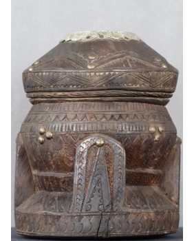 1 400,00 złNie znalazłem odpowiednika oferowanego przedmiotu. Prawdopodobnie jest to rodzaj niewielkiego ołtarzyka, na którym składano ofiary lub po prostu podstawa pod inną plemienną rzeźbę. Bez wątpienia rzecz jest stara.