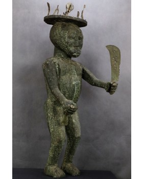 4 800,00 złSądząc po trzymanym w ręku mieczu jest to strażnik. Rzeźba mająca chronić przed dostępem złych mocy i duchów. Chronić rodzinę, domostwo a być może zważywszy na jej rozmiar całą wioskę.