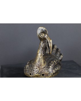 700,00 złPrzedstawia zapewne dzioborożca choć nie mogę jednoznacznie wykluczyć np. perliczki. Jednak ze względu na to, jak popularne jest w sztuce plemiennej Afryki, są wizerunki dzioborożca, optował bym za tym, że to właśnie ten ptak był pierwowzorem rzeźby.