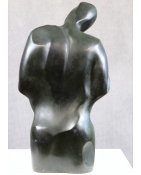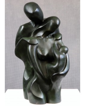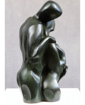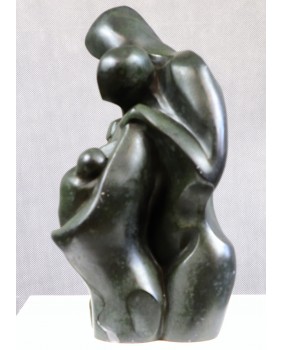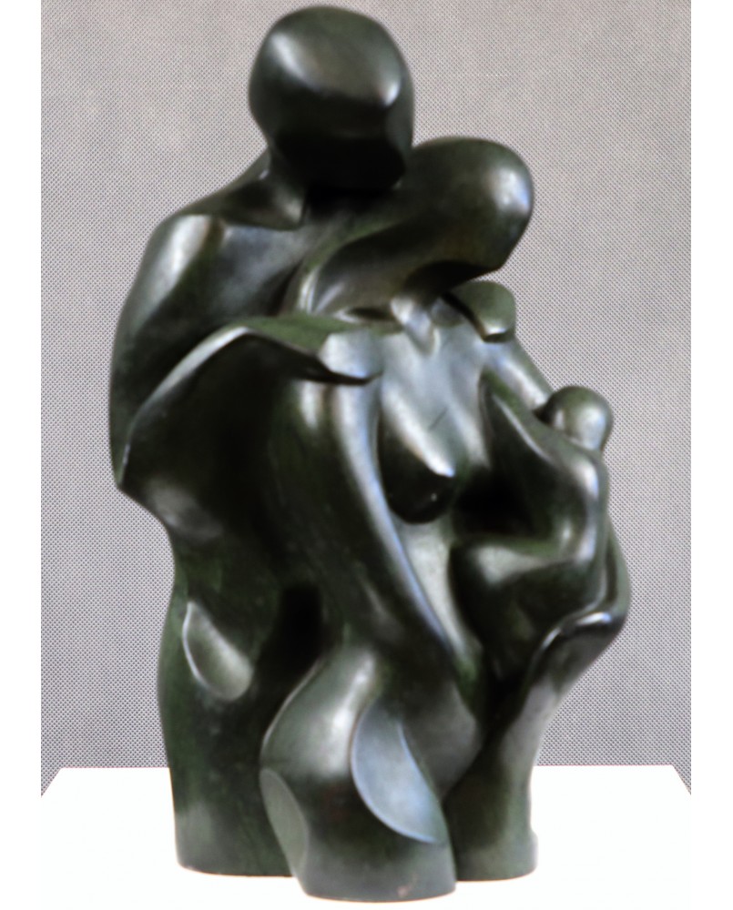 Ta rzeźba trafiła do mojego sklepu dzięki swej prostocie i oczywistości. Temat „rodziny” wbrew pozorom nie zdarza się w rzeźbach często. Być może powodem jest trudność w przekazaniu emocji i uczuć towarzyszących tematowi bez popadania w słodkości i banał. W tym przypadku nieznany artysta [rzeźba niestety nie jest sygnowana] poradził sobie doskonale. Opracowana w sposób tradycyjny grupa, emanuje prostotą, stabilnością, spokojem. Jednocześnie miękkość linii, krągłości, owale pozwalają się domyślać ciepłych, dobrych relacji w tej rodzinie. Nie pozbawiając przyjemności dalszej interpretacji rzeźby przyszłemu właścicielowi dodam tylko, że na pewno jest dziełem profesjonalisty. I to nie byle jakiego. Przychodzi mi na myśl kilka wielkich nazwisk ale bez pewności nie chcę nimi epatować.