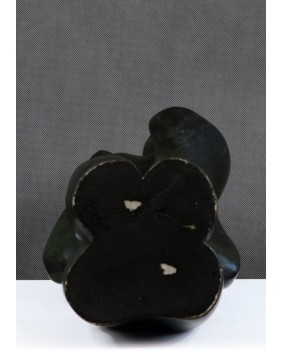 Rzeźba jest duża. Ma 34 cm. wysokości a podstawę dałoby się wpisać w kwadrat 13 na 13 cm. Nie potrafię do końca rozpoznać materiału z jakiego jest wykonana. Jest to rodzaj żywicy bądź wypalony materiał ceramiczny. Kolor imituje patynę na brązie.