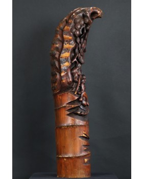 1 200,00 złRzeźba przedstawia, jak sądzę, grupę Nieśmiertelnych grających w mandżonga na tarasie przed świątynią. Bóstwa i świątynia są idealnie wkomponowane w otaczającą świątynię roślinność a potem w bryłę bambusowego pnia użytego do wykonania rzeźby.