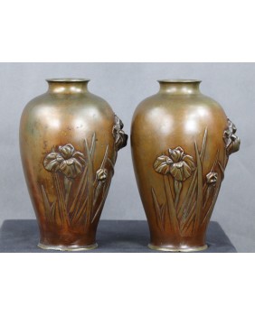 Para wazonów z irysami. Brąz....