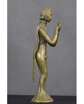 600,00 złRzeźba jest prymitywna. Ludowa to może niezbyt precyzyjne określenie ale jestem pewien, że powstała w małym, prowincjonalnym warsztacie odlewniczym, gdzie bardziej liczyła się jakość odlewu niż jej artystyczny wygląd. Przy czym zadbano o szczegóły typu biżuteria, tradycyjny ubiór i fryzura.