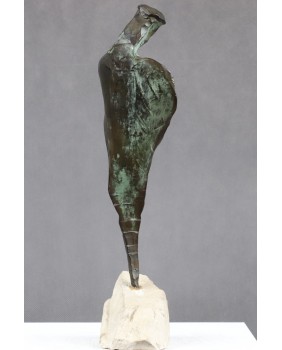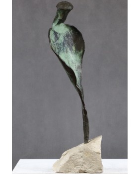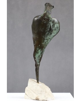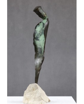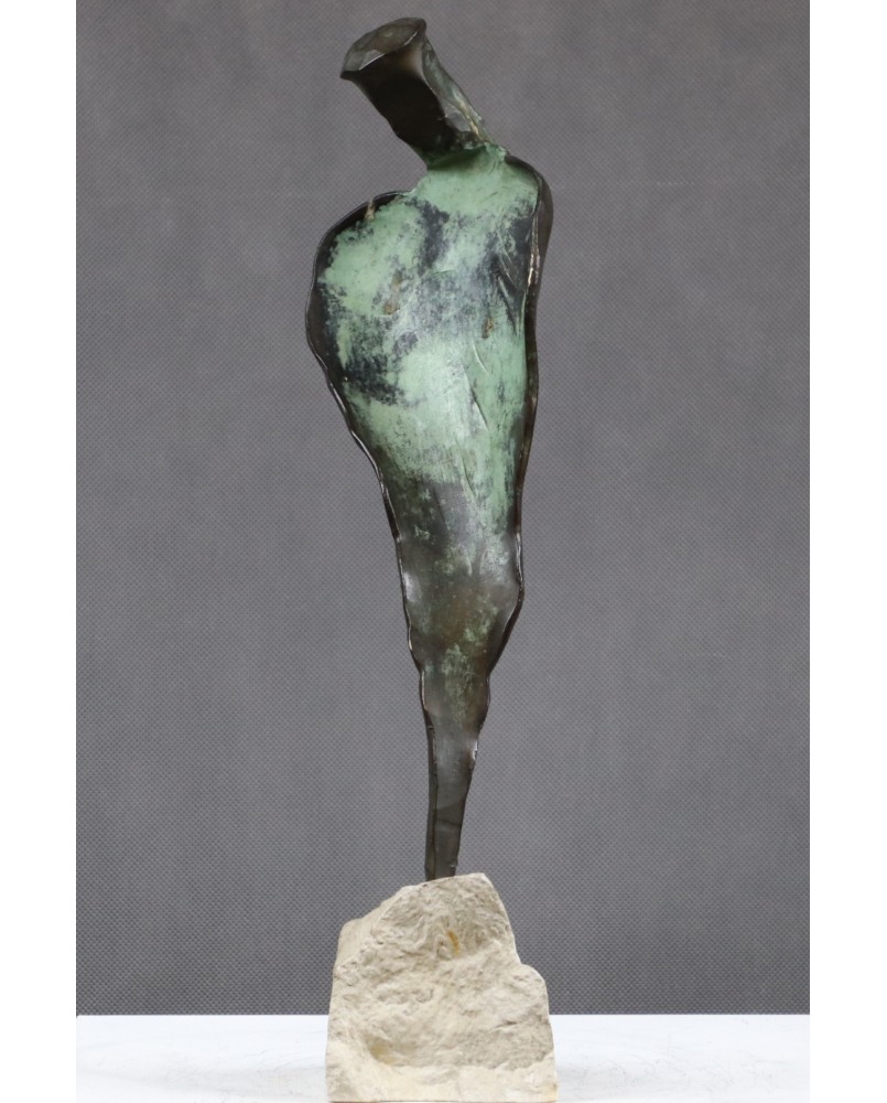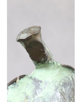 Brąz stoi na białym, nieregularnym trawertynie. Jest spora. Z kamieniem ma 38 cm. Sam brąz to 32 cm. Trudno określić szerokość rzeźby, maksymalnie to 11cm.