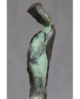 Osobiście widzę tu, w bardzo uproszczony sposób, przedstawioną sylwetkę Chrystusa, który rozkłada ręce w geście błogosławieństwa. Oczywiście może to być tylko moja fantazja. Niemniej rzeźba jest wykonana bardzo profesjonalnie. Artysta celowo maksymalnie uprościł formę. Rzeźba składa sie praktycznie tylko z dwóch brył. Jest prosta i oszczędna a mino tego ekspresyjna i dynamiczna. Piękna nierównomiernie położona patyna powoduje niemal złudzenie ruchu.