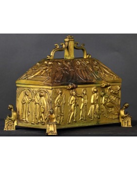 Relikwiarz skrzynkowy. Brąz. XIX...