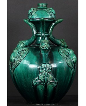 1 600,00 złZielona glazura rozpowszechniła się w dynastii Han a więc jeszcze przed naszą erą, kiedy to, do barwienia glazury oprócz tlenków ołowiu zaczęto dodawać tlenki miedzi. Wrócono do tej techniki barwienia w okresie dynastii Yuan, przynajmniej można tak sądzić po ilości zachowanych przedmiotów.