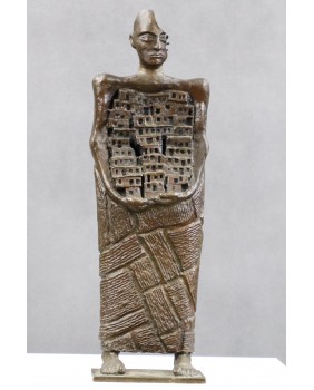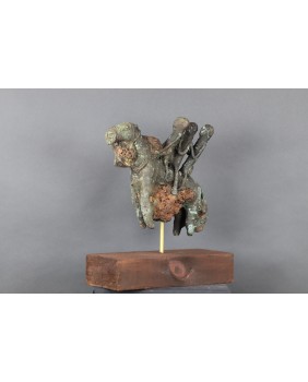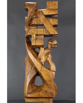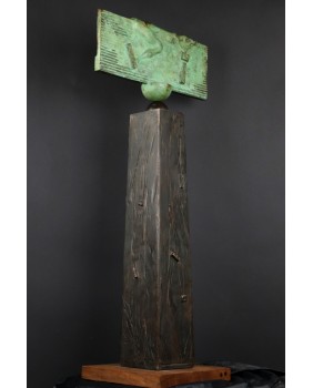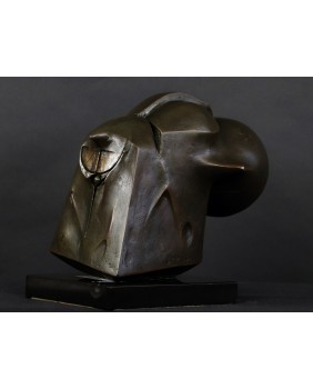 3 200,00 złJeśli dobrze odczytałem sygnaturę, to na podstawie dostępnych w internecie informacji rzeźbę można by przypisać Raffaelowi Lomasowi, urodzonemu w roku 1962 w Tel Awiwie, izraelskiemu artyście. Jego artystyczne dokonania, skomplikowane konstrukcje z plątaniną geometrycznych elementów, nieco rzeźbę, którą oferuję przypominają. Szczególnie widać to jego projekcie „Chair”. Choć trzeba też jasno powiedzieć, że to co robi Raffael Lomas obecnie dalekie jest od tradycyjnej sztuki. Rzeźba musiałaby pochodzić z początków jego edukacji, zanim ostatecznie skrystalizowała się jego twórcza droga.