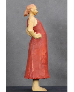 Kobieta w czerwonej sukni. Drewno....