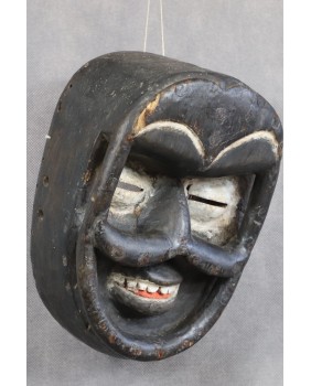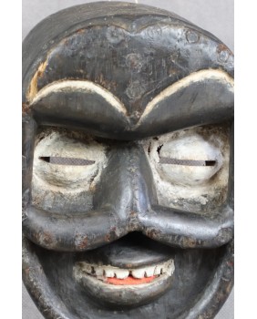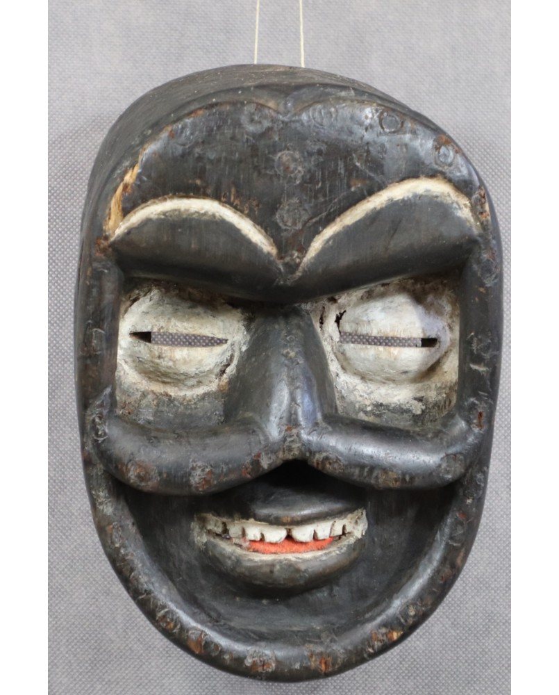 Istnieje cała grupa masek pochodzących z południa Wybrzeża Kości Słoniowej mających wspólne cechy. Przede wszystkim są niepokojące. Mają silne deformacje, wystające części przypominające kły, wypukłe czoła, rozchylone usta ukazujące uzębienie. Są pochodną dawnych masek wojennych, które miały na celu przestraszyć i zdeprymować wroga. Przed bitwą, w rytualnych tańcach, za ich pomocą przywoływano bóstwo Gre, będące siłą niszczącą, złem i terrorem w czystej postaci. Maski te zdobiono muszlami, włosiem zwierząt, gwoździami, malowano w kontrastowe barwy. Także na tej, którą oferuję są ślady po metalowych okrągłych guzach.