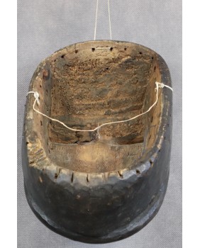 Sądzę, że maska jest stara. Była zapewne częścią gromadzonej niegdyś kolekcji. Jest w stosunkowo dobrym stanie z niewielkimi ubytkami drewna. Szkoda, że brakuje tych dodatkowych ozdób. Ma 25 cm. wysokości i 17 cm. szerokości. Jest głęboka - 12 cm.