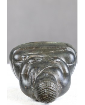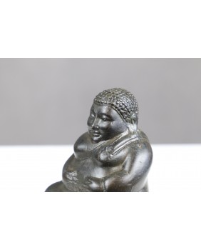 Jestem zmuszony zweryfikować swój pierwszy opis tej rzeźby, w którym uznałem, że figurka jest przedstawieniem niekanonicznym związanym ze sztuką ludową. Nie doceniłem mnogości wyobrażeń Buddy. Znajomy antykwariusz przysłał mi link do strony francuskiej galerii, gdzie jest oferowany identyczny brąz. Nie pozostaje mi nic innego jak skorzystać z wiedzy ludzi bardziej wykształconych i uznać ich rację.