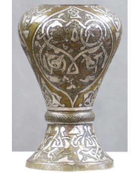 Sądzę, że wazon został wykonany w Egipcie w czasie gdy rodziła jego nowoczesna państwowość. Świadomość własnej tożsamości narodowej powodowała, że sztuka w tym okresie nawiązywała do jednego z najświetniejszych okresów twórczości artystycznej islamu „ Odrodzenia Mameluków”. Uściślając powstał na przełomie XIX i XX wieku lub na początku XX. Jest przykładem wykorzystania geometrii w tworzeniu skomplikowanych dekoracji, pokrywających cała powierzchnię naczynia,nawiązujących do idei nieskończoności istoty Boga. Dodatkowo reprezentuje arabską sztukę inkrustacji wykorzystującą w zdobieniach dwa różne metale. Kształt wazonu jest dość nietypowy ale takie też bywały.