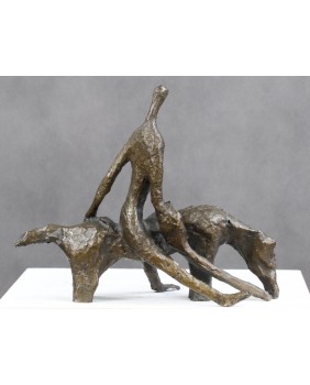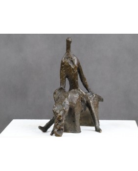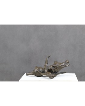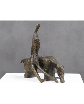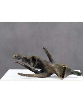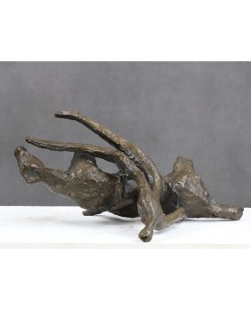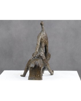 Brąz nie jest duży. Ma 20 cm wysokości i 26 cm długości. Szerokość to 13 cm. Brak jakiejkolwiek sygnatury. Odlew jest surowy nawet powiedziałbym dość niechlujny. Mam jednak wrażenie, że było to zamiarem twórcy.