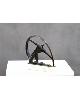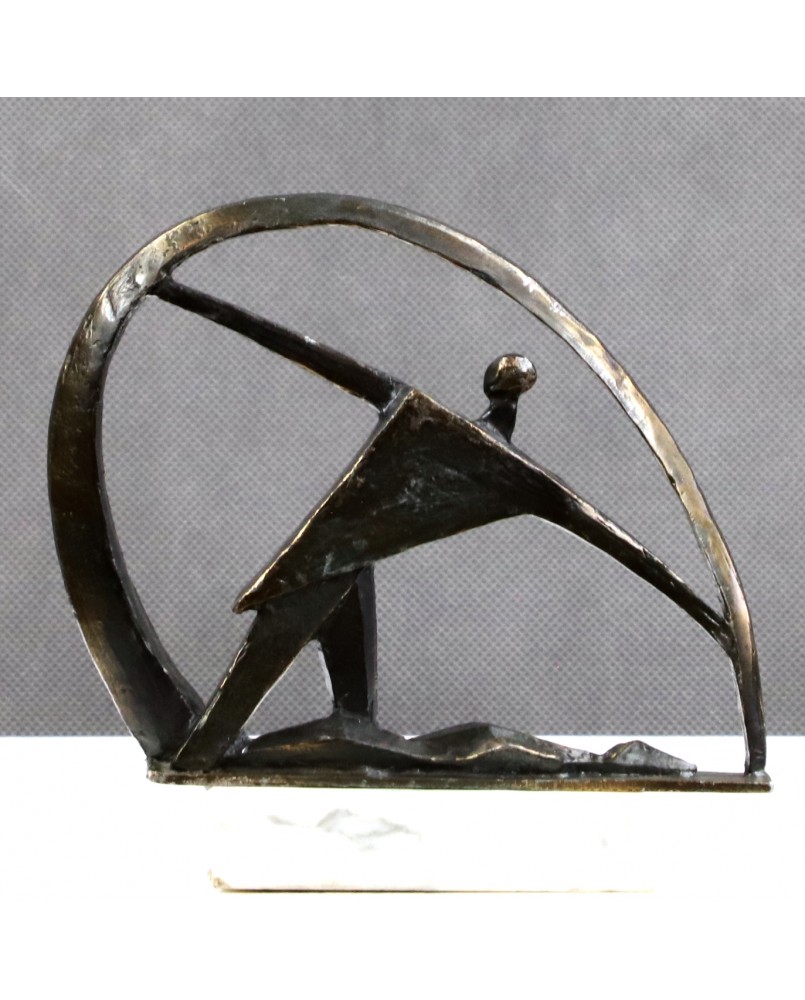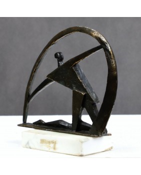 Rzeźba przedstawia zapewne „Taniec ze wstęgą” jedną z najbardziej widowiskowych konkurencji w gimnastyce artystycznej. Głównym jej budulcem są bryły oparte na bazie trójkąta. Użyte bardzo oszczędnie tworzą bardzo dynamiczną, kubistyczną kompozycję. Ta oszczędność, niemal graficzny zapis, skłania mnie do przypuszczeń, że może pochodzić z serii rzeźb opisujących konkurencje olimpijskie, zaprojektowanych z okazji dużej imprezy sportowej, może olimpiady. Nie potrafię tego potwierdzić, tym bardziej, że nie znam autora ale gdy chodzi o rzeźbę okazuje się często, iż mam kobiecą niemal intuicję.