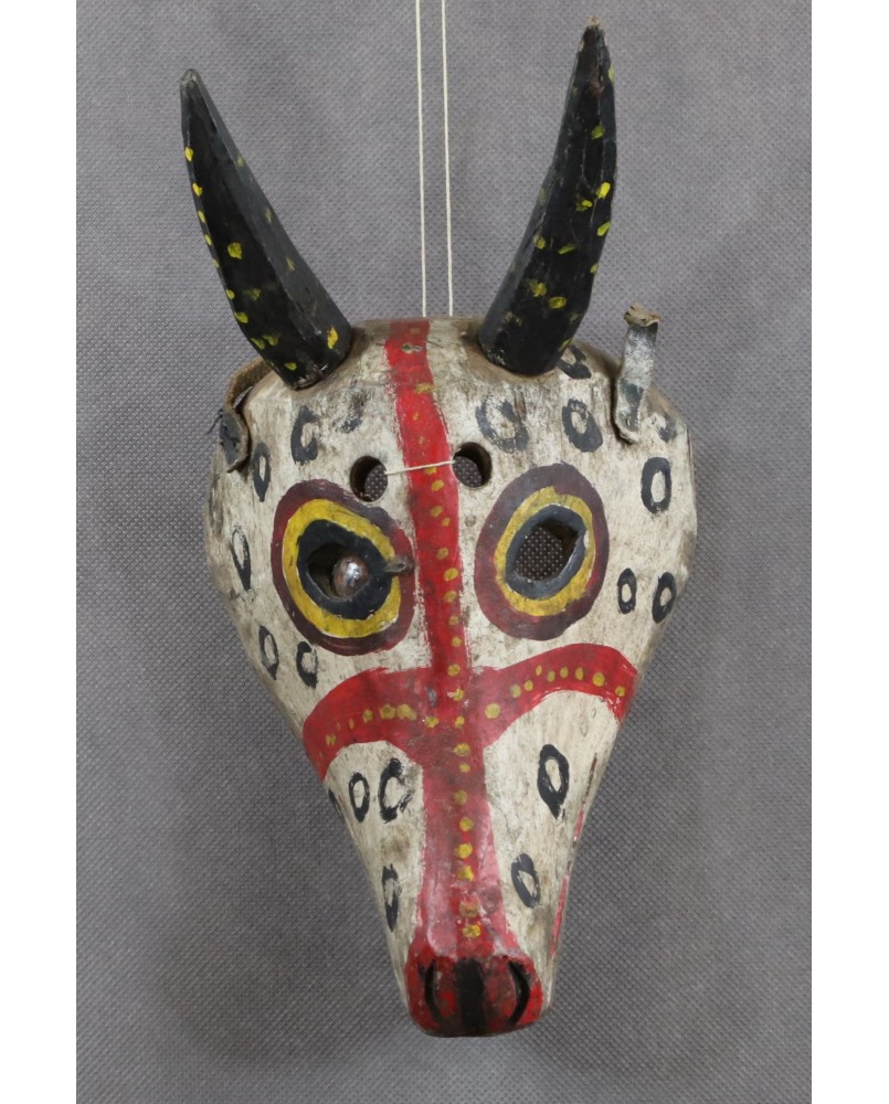 Maska została zapewne wykonana na potrzeby trwającego corocznie od kilkuset lat święta. Trwa ono trzy dni i składa się głownie z korowodów, tańców i śpiewu. Przez zewnętrznych obserwatorów nazywane jest teatrem totalnym. Biorą w nim udział tancerze ukryci w lalkach reprezentujących postacie mitycznych stworów, zwierząt, duchów i demonów. Biorą udział olbrzymie ponad dwumetrowe stwory, obsługiwane przez kilka osób i nazywane gogow. Stwory wieńczą maski i niewielkie pacynki. Korowód mimo, że odbywany wspólnie dzieli uczestników na kobiety i mężczyzn, na grupy wiekowe, na stowarzyszenia jawne i tajne, grupy zawodowe, śpiewaków i tancerzy. Nawet nie podejmuję się opisać całej różnorodności tego święta. Dość powiedzieć, że wyznacznikiem przynależności do różnych grup są właśnie maski, stroje i kolory.