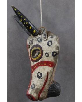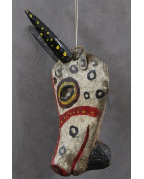 Opisywana maska nie jest duża. Mogła być częścią lalki bądź pacynki. Sama głowa antylopy ma zaledwie 20 cm a z rogami 29 cm. Jej szerokość to 14 cm a głębokość 11 cm. Ciekawostką są przezroczyste przesłony, zamykające oczy zwierzęcia. Niestety ocalała tylko jedna. Maskę datuję na pierwszą połowę XX wieku.