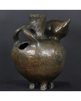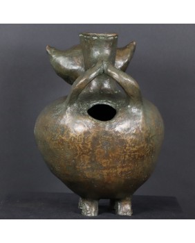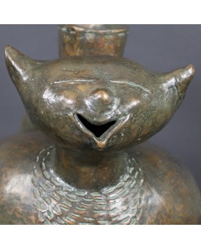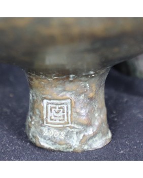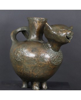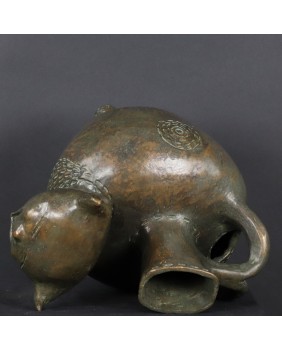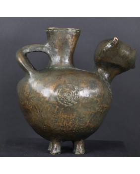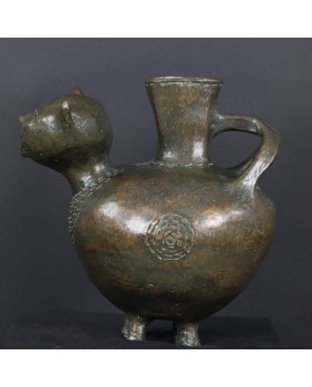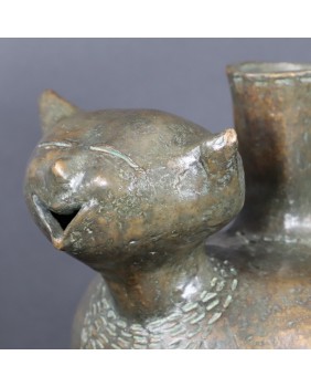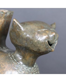 Oferowany kot wykonany jest z brązu, ma 30cm wysokości, długość 29cm i szerokość 20cm. Nogi ustawione są w kwadrat o boku 7 cm.